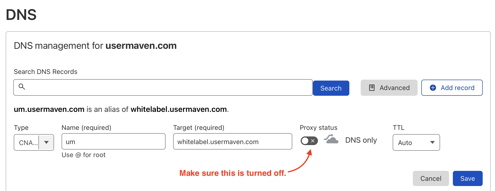 Name: [subdomain] (eg um for um.yourdomain.com)