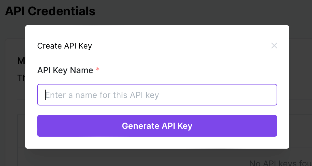 In the subsequent step, assign a name to your API key and proceed by clicking the "Generate API Key" button.